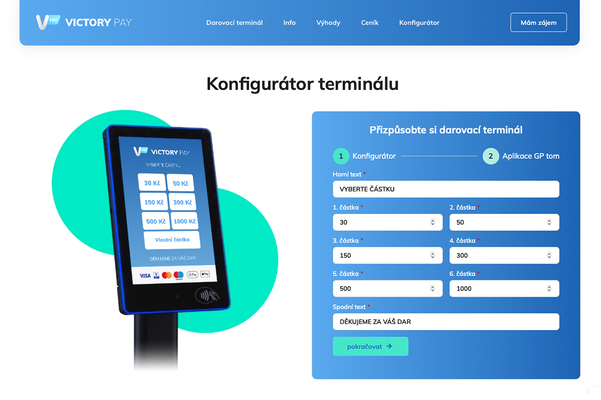 Terminály umožňují organizacím přizpůsobit si výši příspěvku podle uvážení.